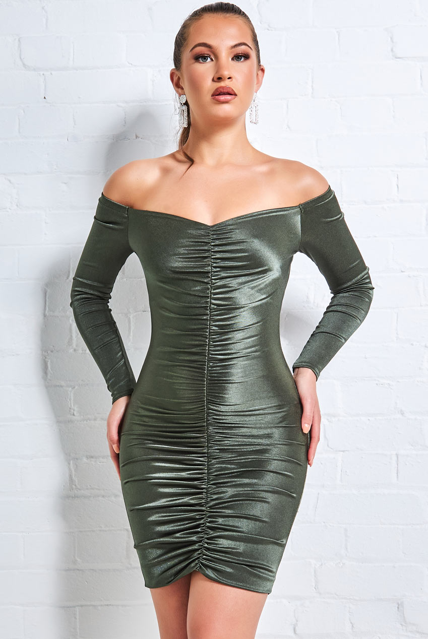 The Goddiva Off The Shoulder Ruched Mini Dress (Style Number: DR2538) is the ultimate choice for fashion-forward individuals who want to stand out from the crowd. Its trendy design, combined with its comfortable fit, makes it a go-to option for any event or occasion.
