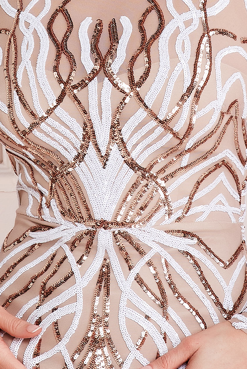 Goddiva Flame Patterned Sequin Long Sleeve Maxi Dress