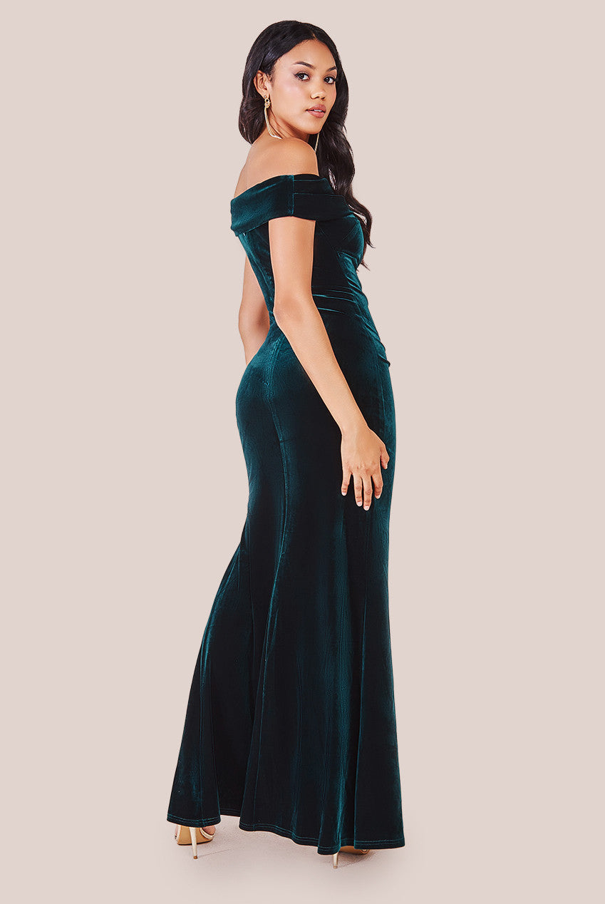 Introduce sheer elegance to your collection with the Velvet Bardot Maxi Dress with Split in burgundy, a must-have for special occasions. This stunning maxi dress features an off-the-shoulder Bardot neckline, beautifully showcasing the shoulders and collarbone. The gathered waist detail ensures a flattering silhouette, while the soft-touch velvet fabric adds a luxurious feel. Ideal for bridesmaids, black-tie events, or formal occasions, this dress exudes sophistication and style. The sultry front split enhances its allure, making it perfect for customers seeking to make a statement at any noteworthy event. Stock up on this timeless piece designed to create unforgettable memories and leave a lasting impression.