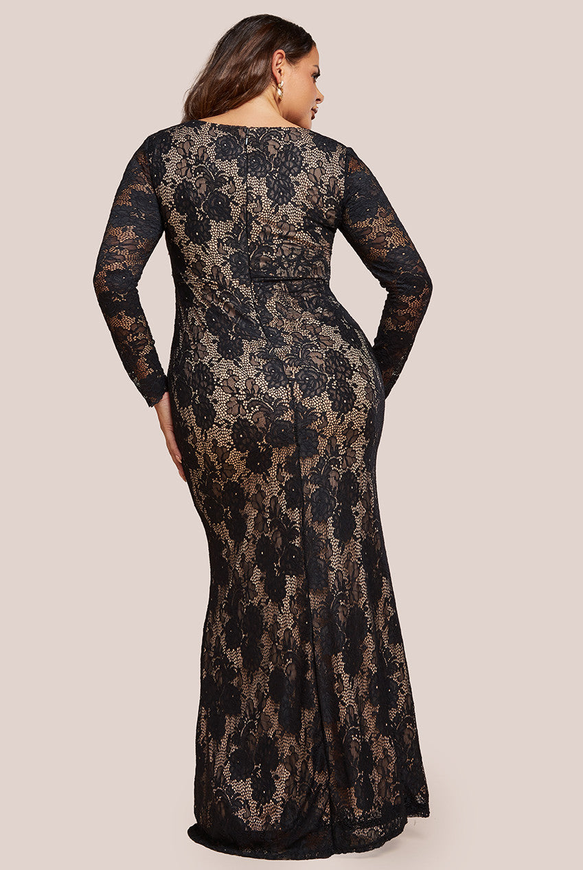 Goddiva Plus Scalloped Lace Corset Bodice Maxi Dress
