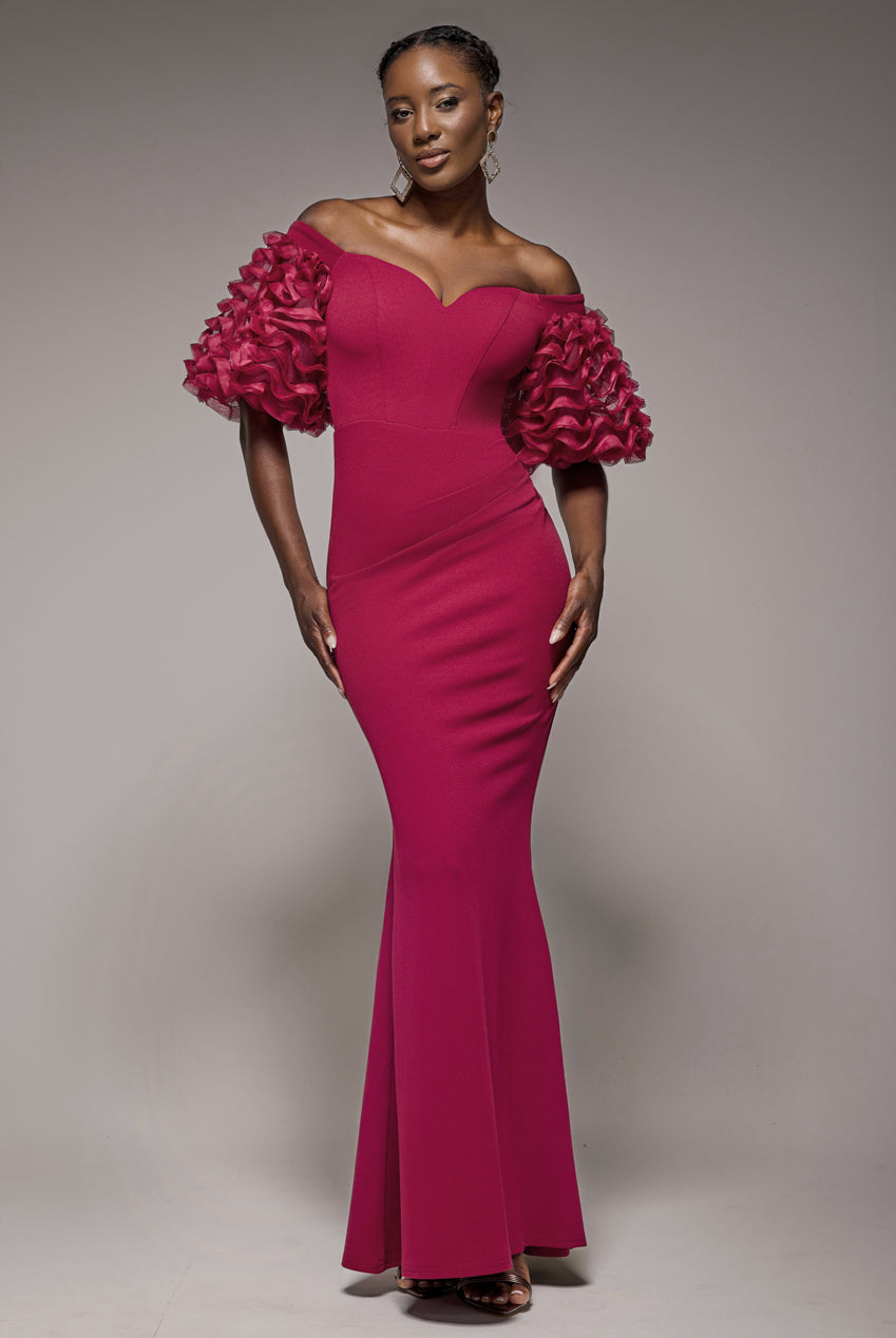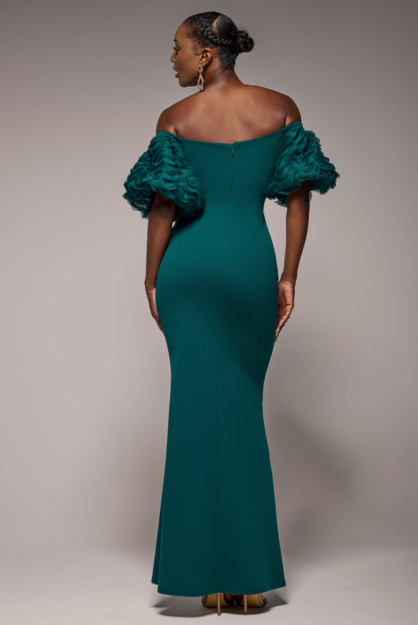 Goddiva Off The Shoulder 3D Puffed Sleeve Sweetheart Maxi Dress